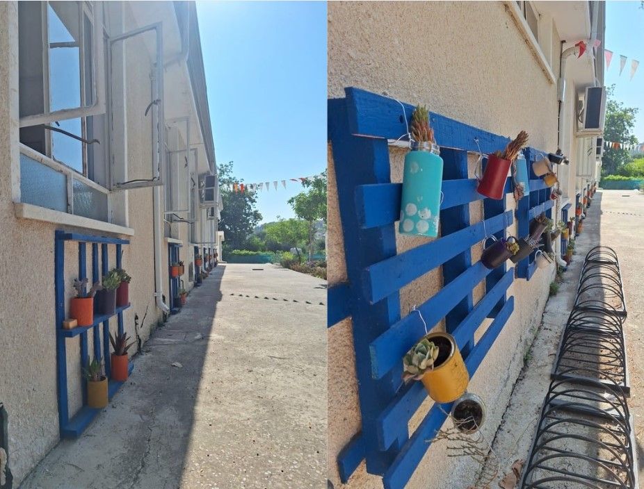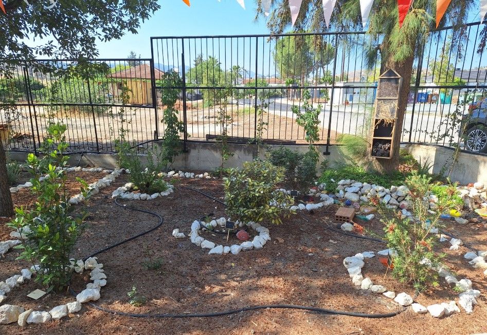 Με προσεκτικό σχεδιασμό, οριοθετήθηκαν θεματικοί χώροι, καθένας με τη δική του ταυτότητα και σκοπό, προσφέροντας στους μαθητές ποικίλες εμπειρίες επαφής με τη φύση. Νέες φυτεύσεις από καλλωπιστικά φυτά, θάμνους, αρωματικά, εσπεριδοειδή, πολυετή, παχύφυτα, αναρριχητικά και λαχανικά προσέδωσαν χρώμα, άρωμα και ζωή στο περιβάλλον, ενώ ξύλινες κατασκευές – όπως υπερυψωμένα παρτέρια, καθιστικά και διακοσμητικά στοιχεία – ενίσχυσαν τη λειτουργικότητα και την αισθητική του χώρου. Η εγκατάσταση συστήματος αυτόματου ποτίσματος εξασφαλίζει τη σωστή φροντίδα των φυτών με βιώσιμο τρόπο, μειώνοντας την ανάγκη για χειροκίνητη παρέμβαση. Η νέα εικόνα του σχολείου μας είναι πιο εκπαιδευτική, βιώσιμη και όμορφη για όλους!